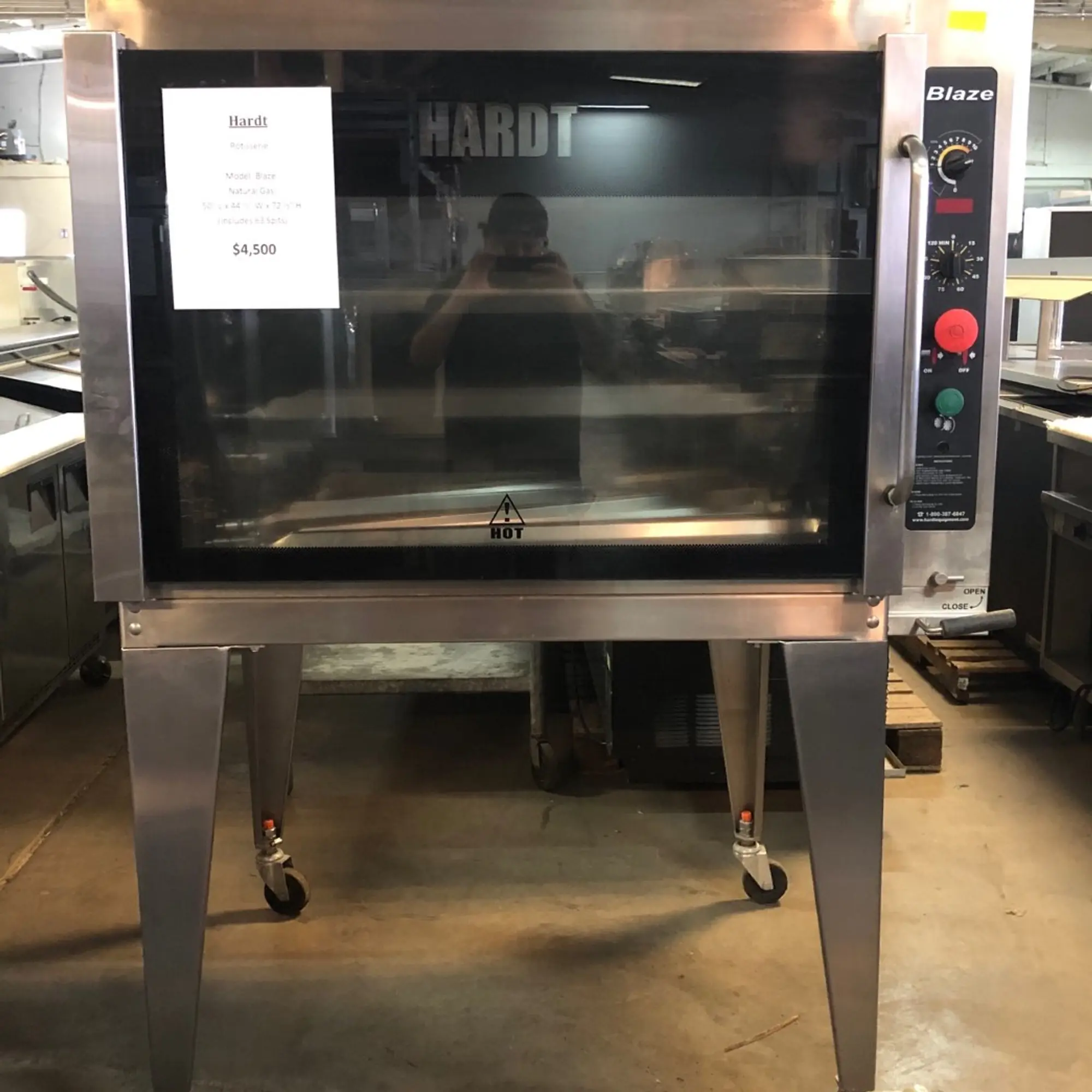 Hardt natural gas rotisserie includes 63 spits. Item is in good working conditions. 60 day warranty restrictions may apply. If you need help with shipping we can help you get a quote!